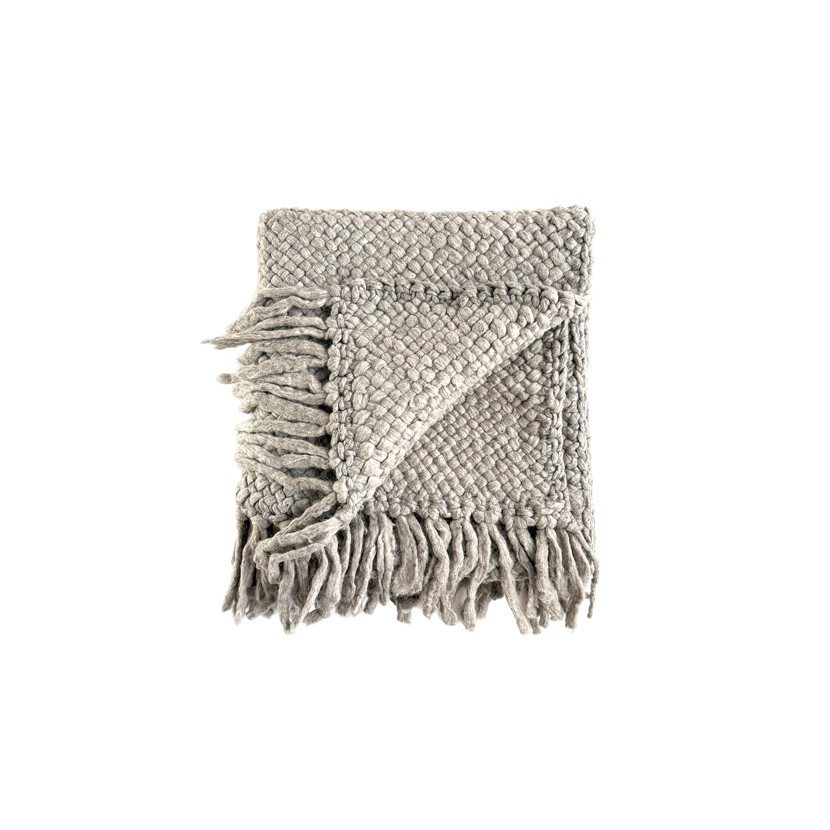 A throw handwoven from double threads, featuring fringes and crafted in a soft ash grey colour. Its subtle and elegant design adds warmth and texture to your space, or can be draped over your shoulders for a cosy, stylish touch.