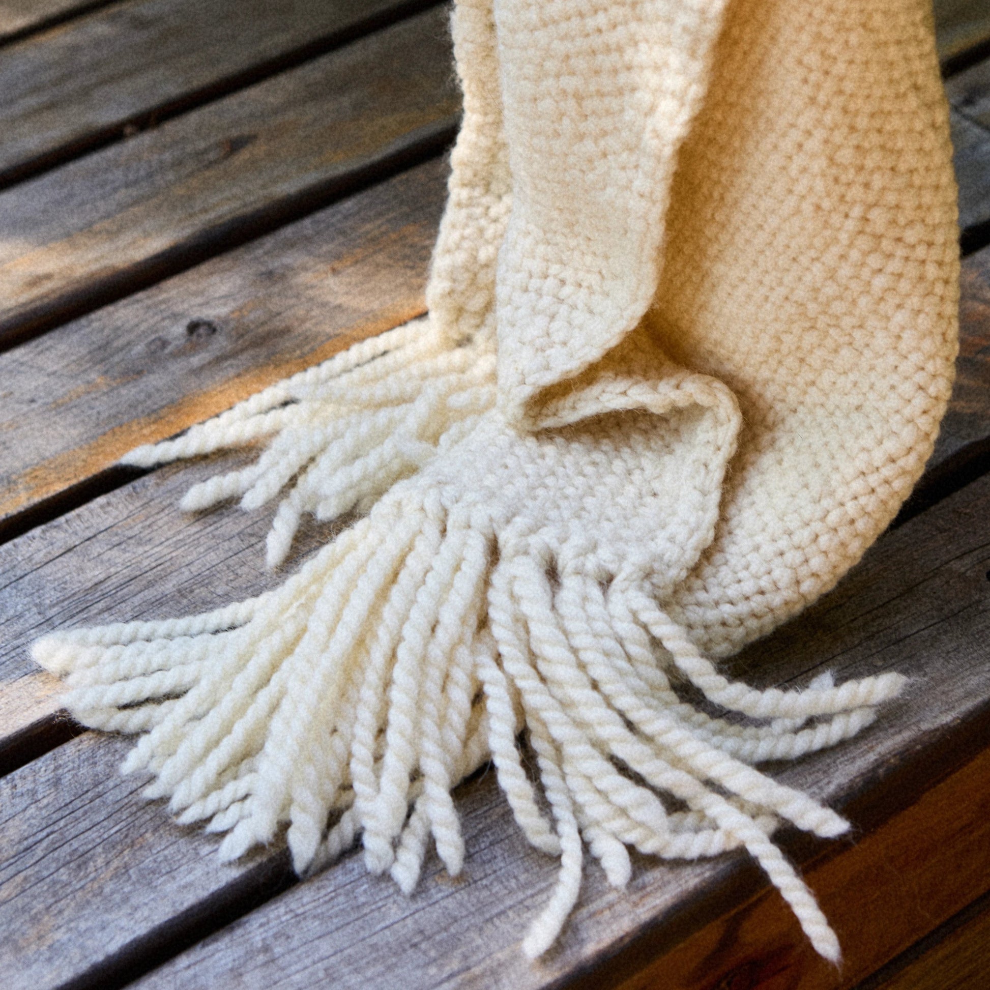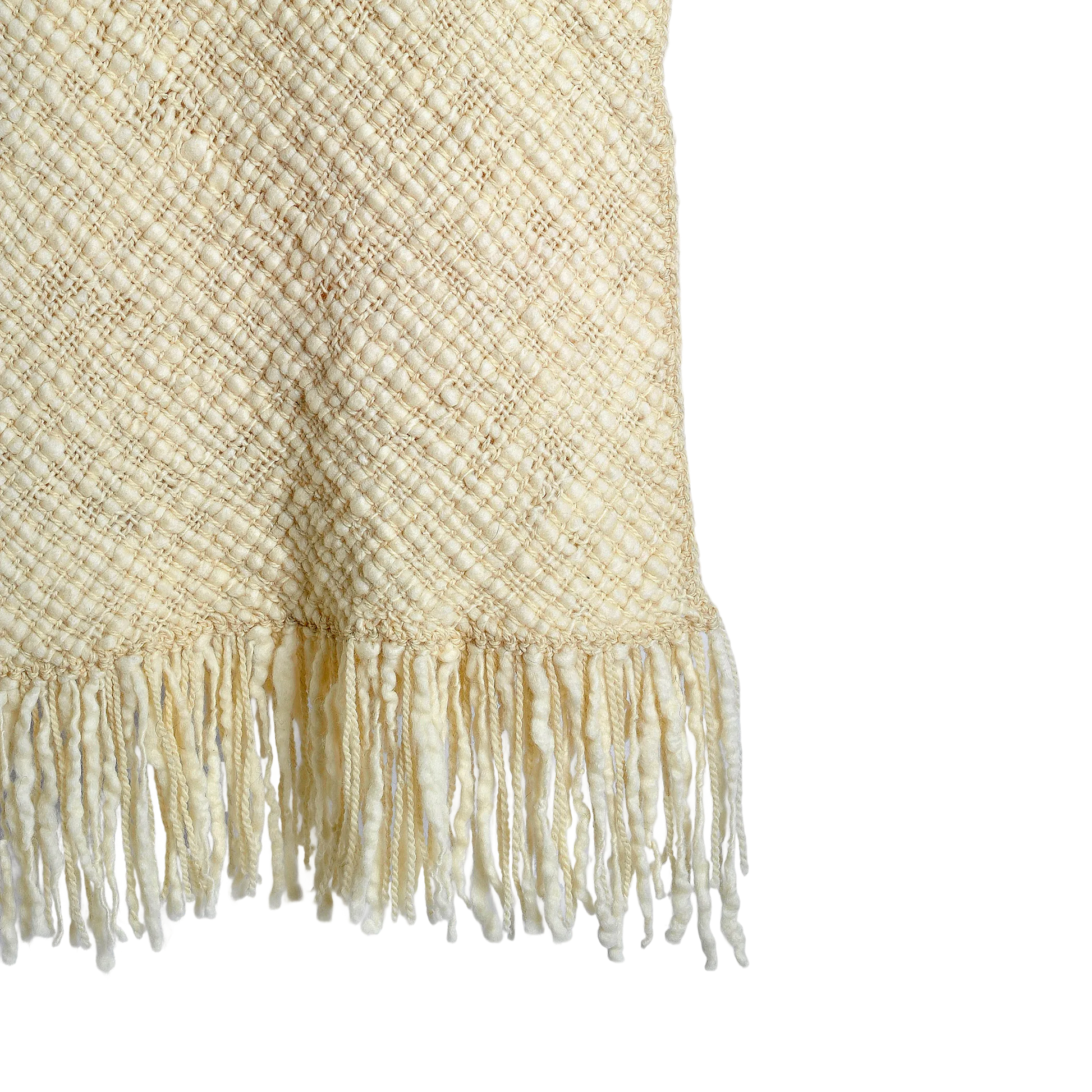 A versatile piece, handwoven from brushed natural llama fibre to serve as a bed runner, small rug, or shoulder wrap. Finished with fringes, it brings warmth, texture, and quiet character to your space—or to you.