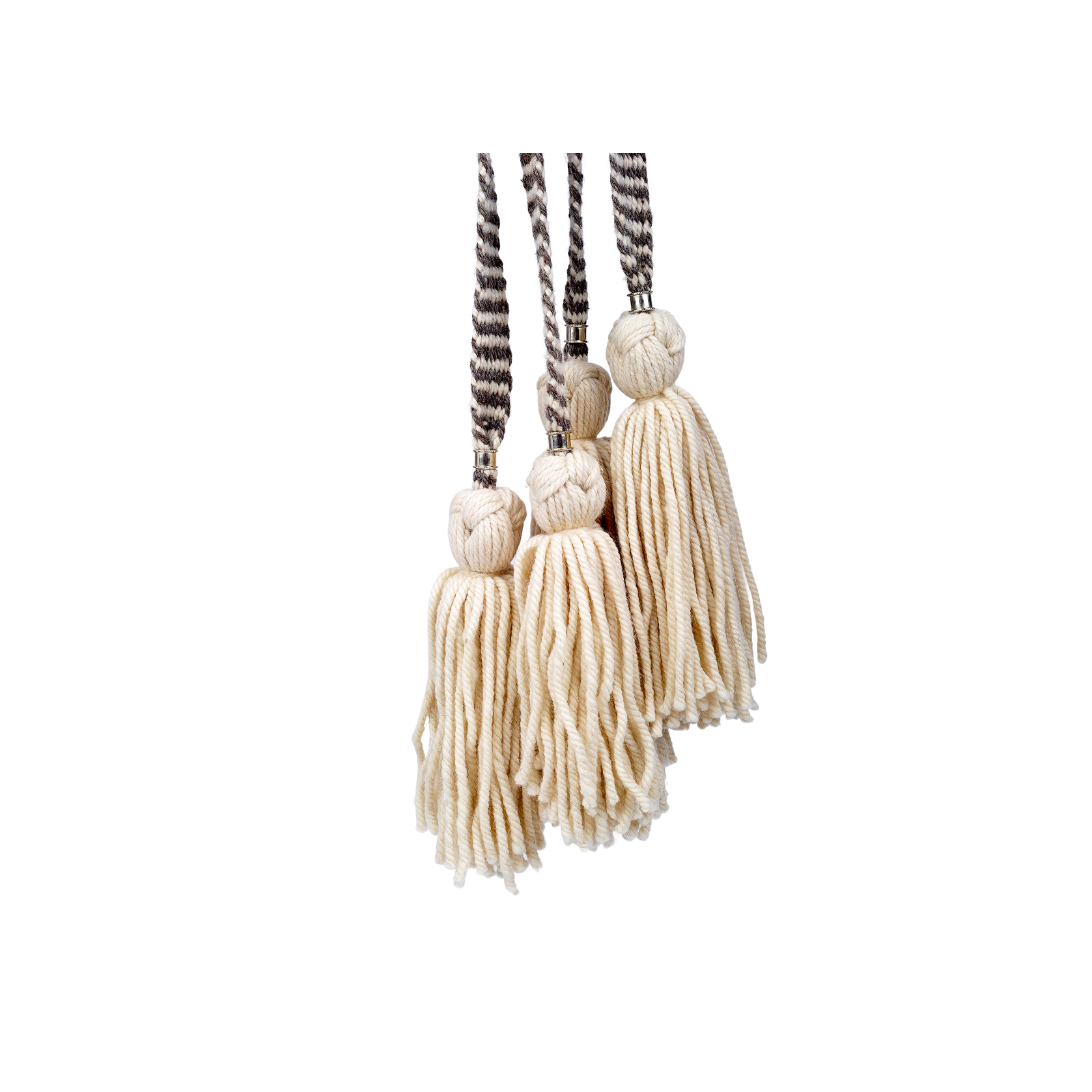 Pair of curtain tassels featuring a handwoven band in natural and grey tones—an understated detail that brings texture, balance, and a soft, earthy touch to your space.