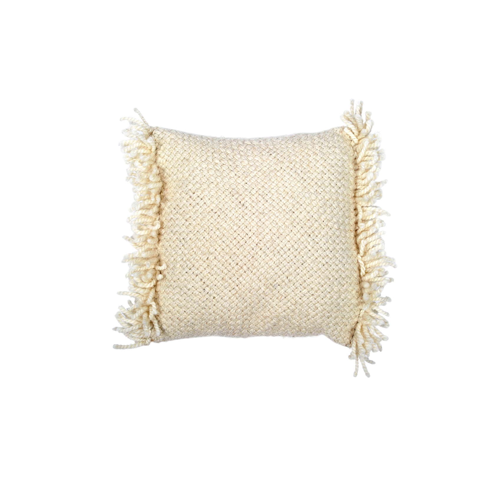 A simple yet elegant cushion cover, featuring delicate lateral fringes and a handcrafted closure—each detail made with care to bring warmth and texture into any space.