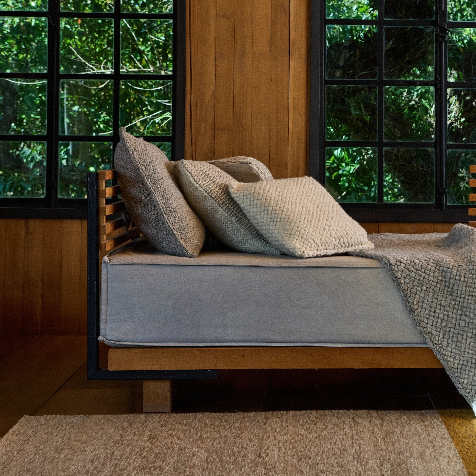 A cushion cover featuring a simple, single-thread weave, finished with a handcrafted closure—an understated piece that brings a natural, elegant presence to your home.