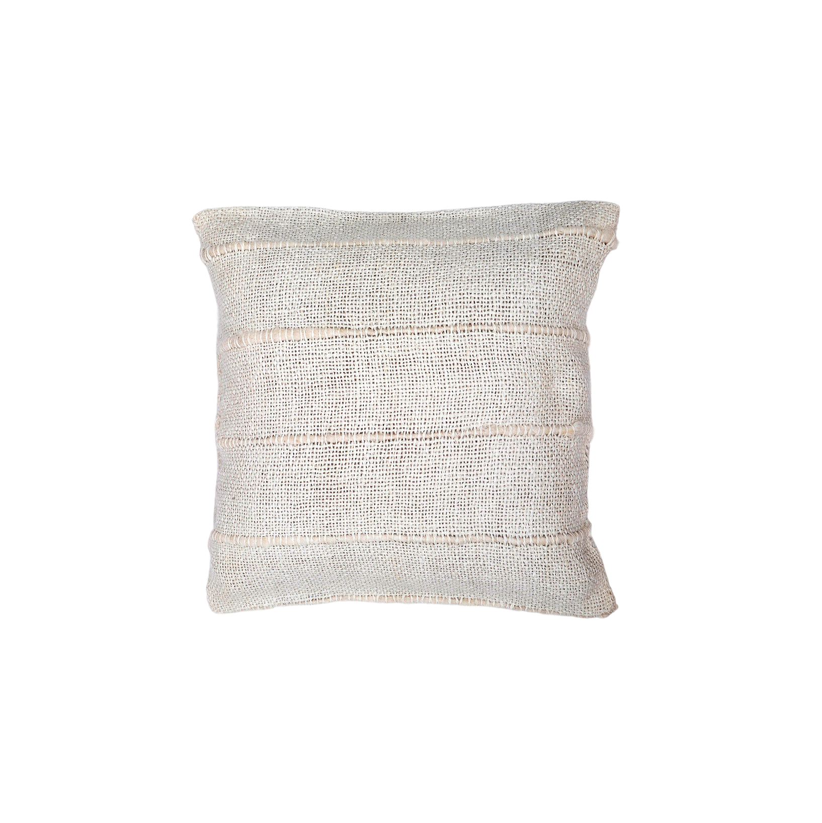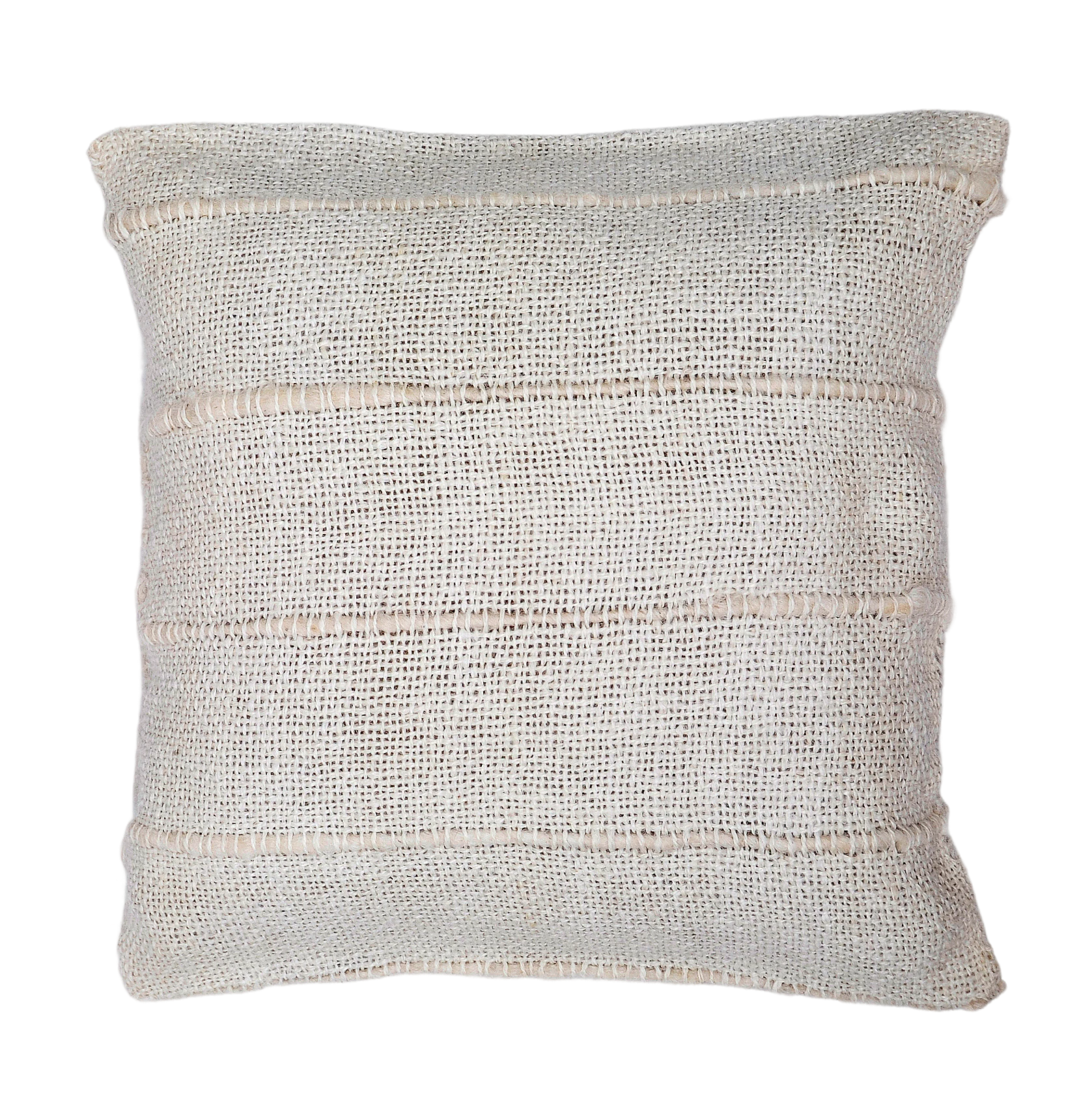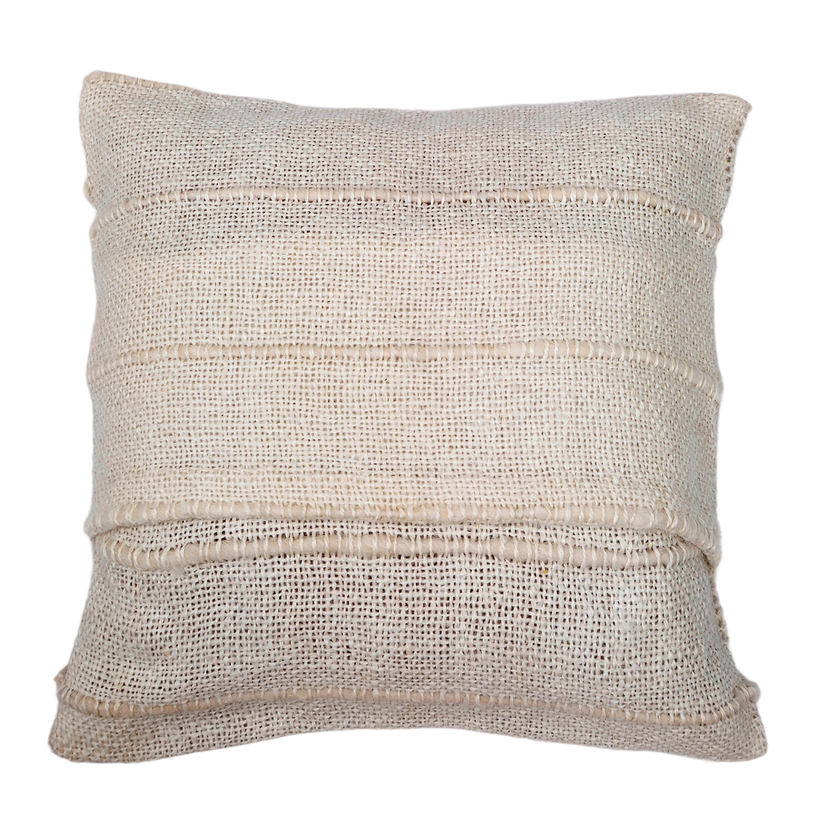 A cushion cover made from soft llama fabric with tonal stripes, featuring a more open weave and finished with an overlapping handcrafted closure—offering a relaxed, textured look for your home.