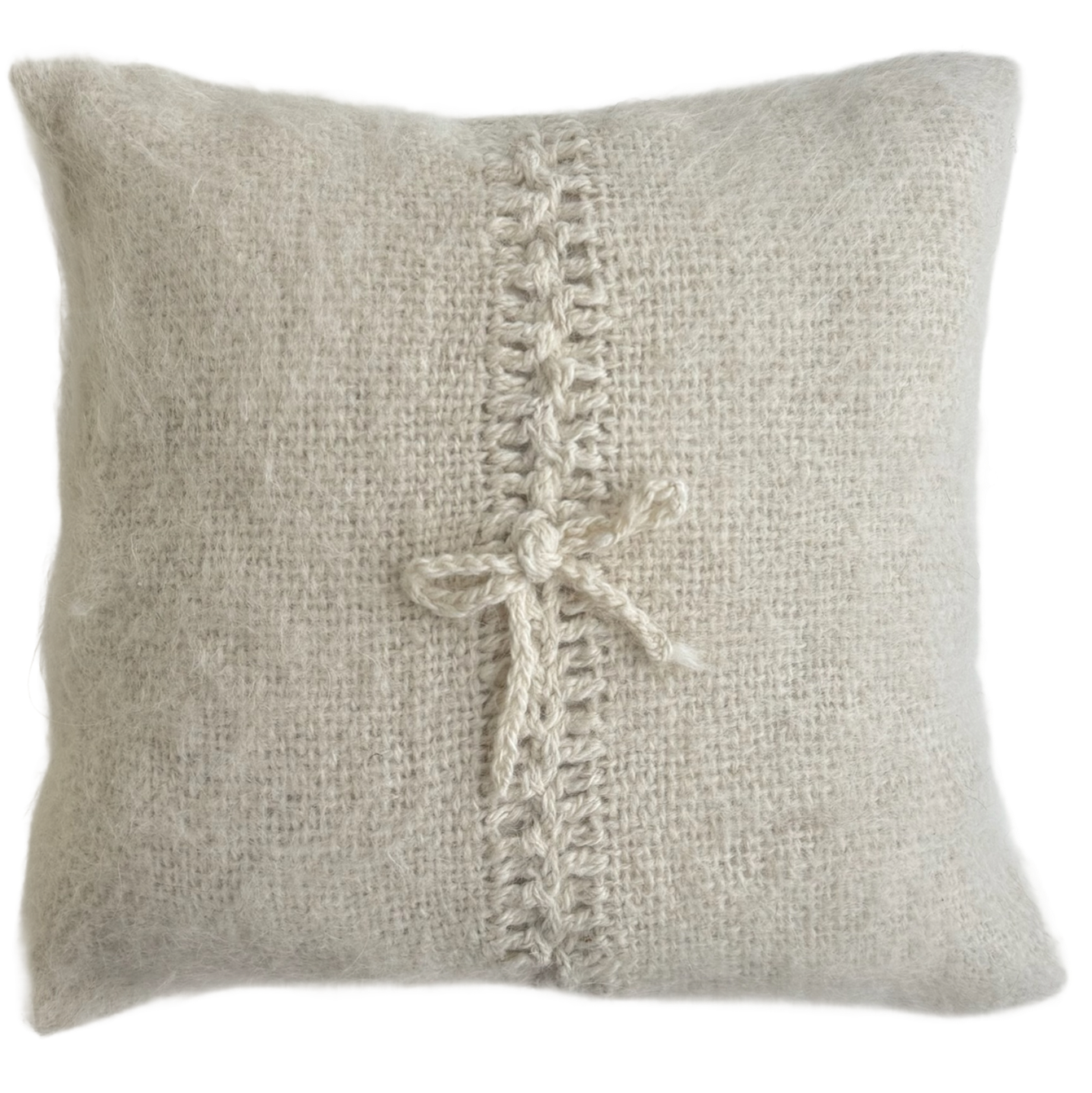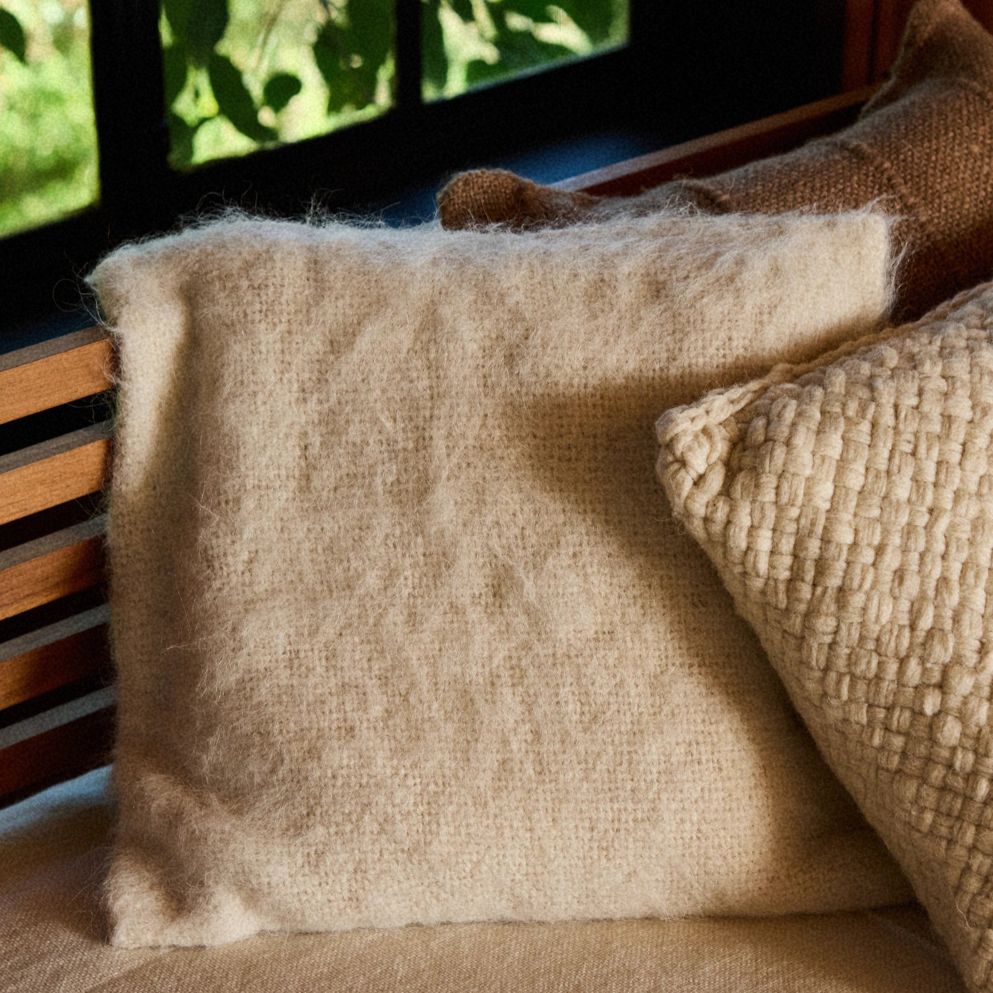 A cushion cover crafted from natural-coloured llama wool, finely brushed for a soft, luxurious feel — bringing warmth and comfort to any room.