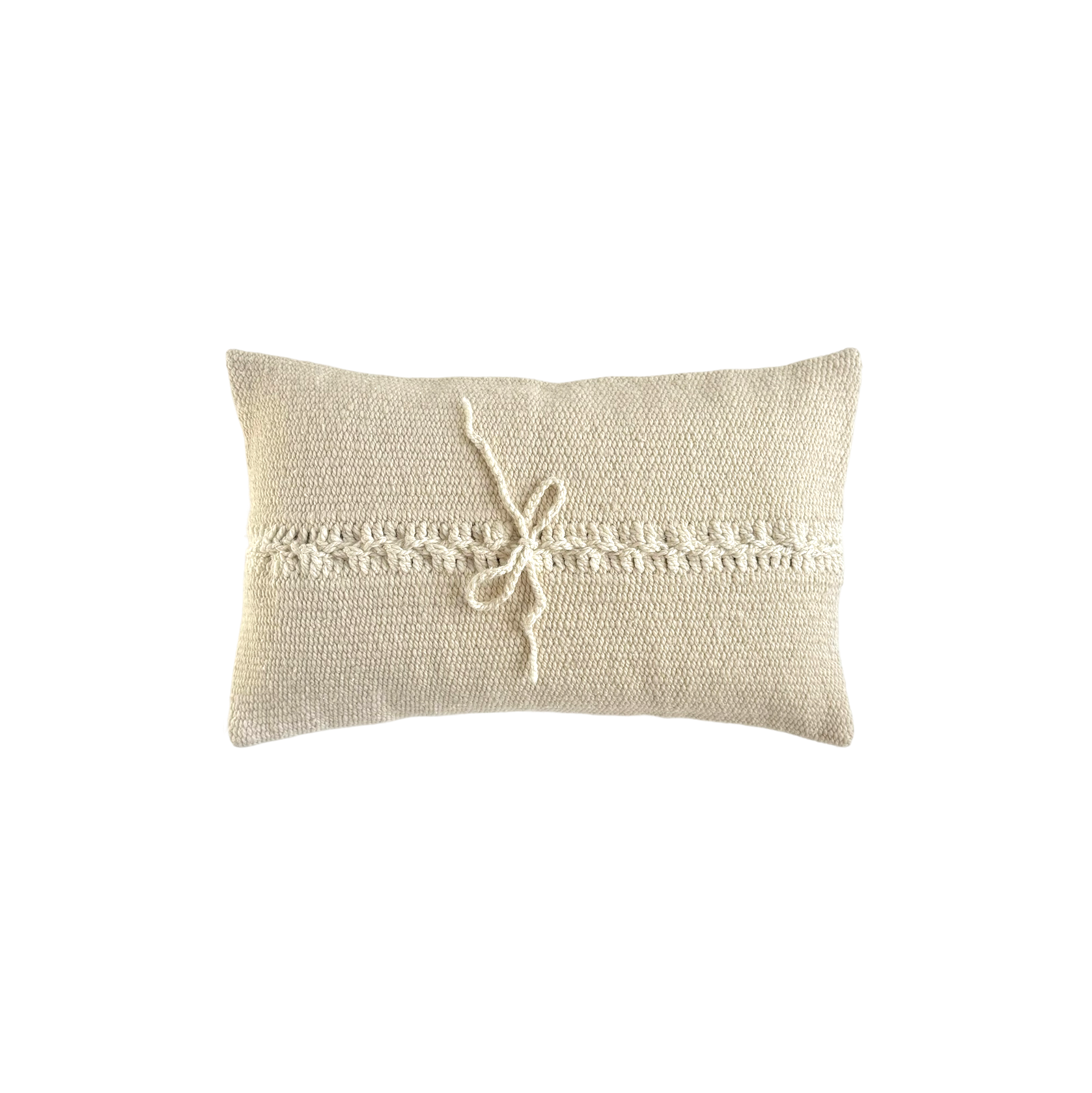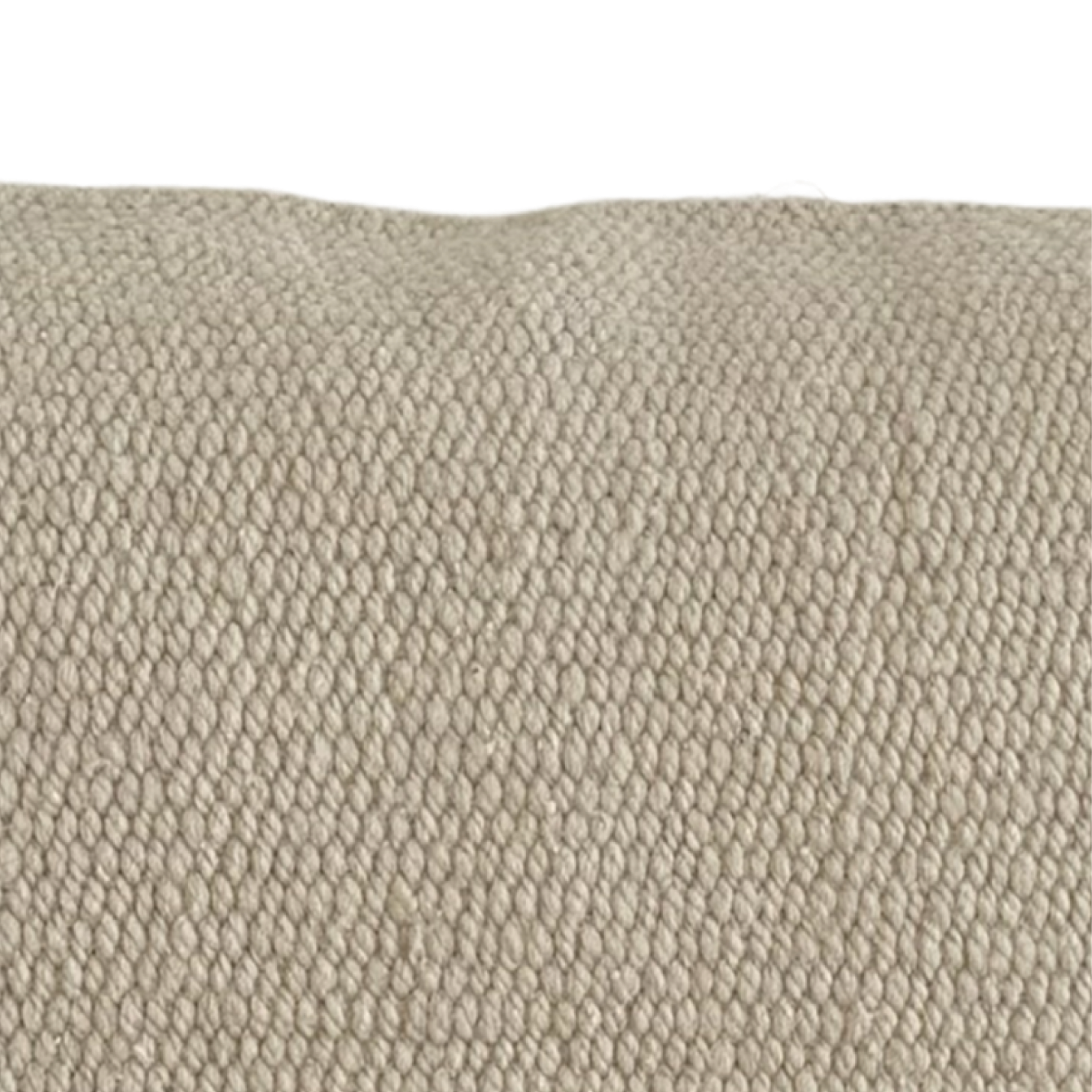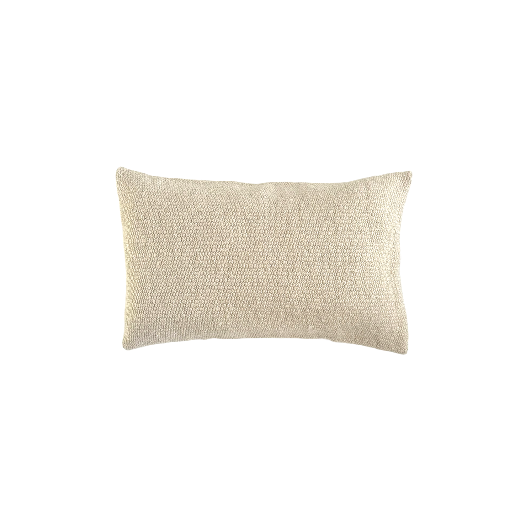 A rectangular cushion cover with a simple weave, finished with a handcrafted closure—simple, elegant, and versatile for any room.