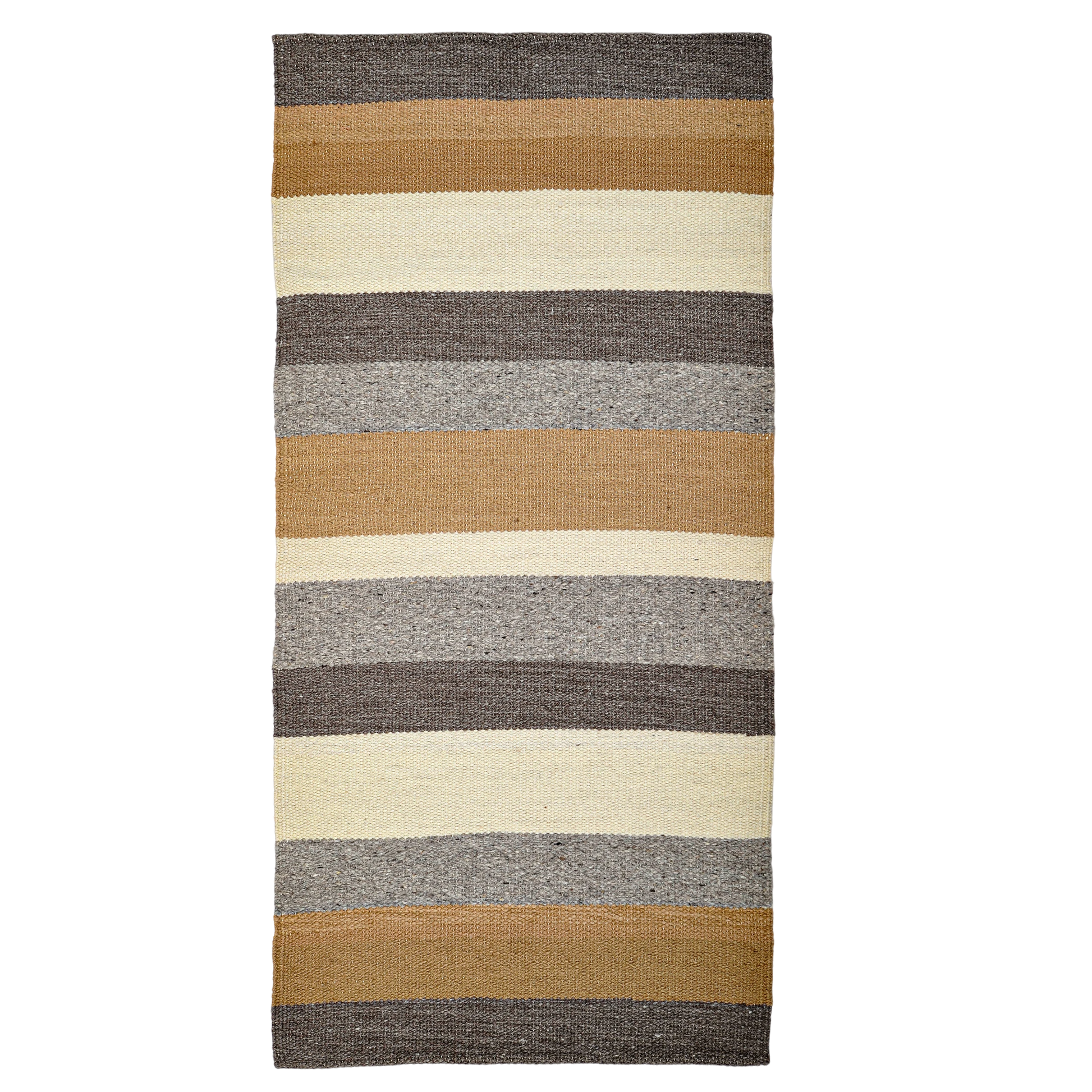 A handwoven rug with striped patterns and a tight, durable weave, crafted from soft sheep wool—textured, timeless, and grounded in simplicity.
