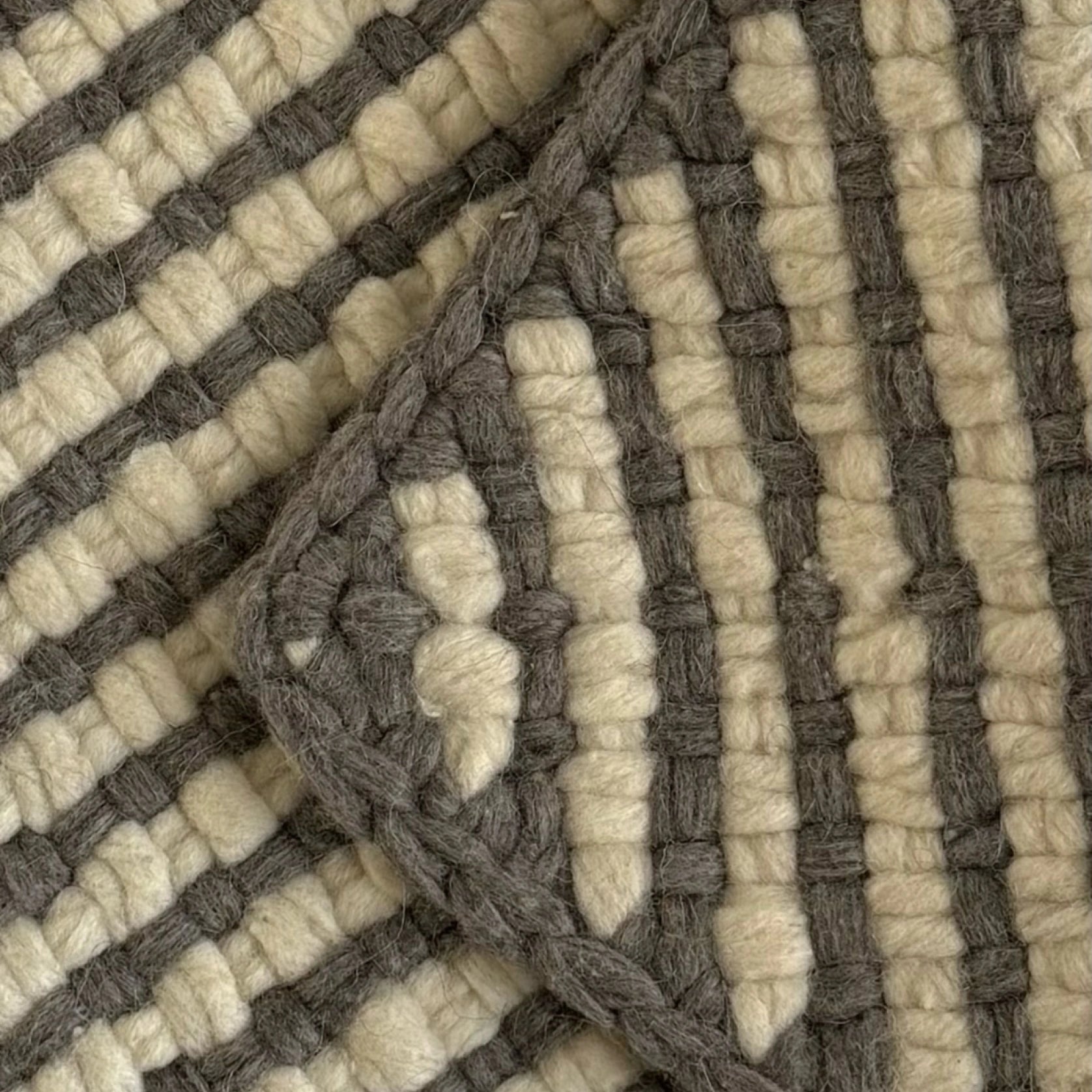 A rectangular rug crafted from soft sheep wool, featuring natural and grey tones, woven with double thread for enhanced texture and durability—bringing warmth and understated elegance to your space.