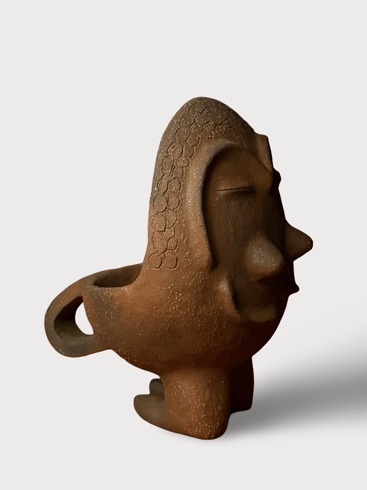 A handcrafted incense burner, designed to hold and burn your favourite incense, allowing the natural aromas to fill your space. With its unique design, this piece brings a touch of earthy elegance to your rituals.