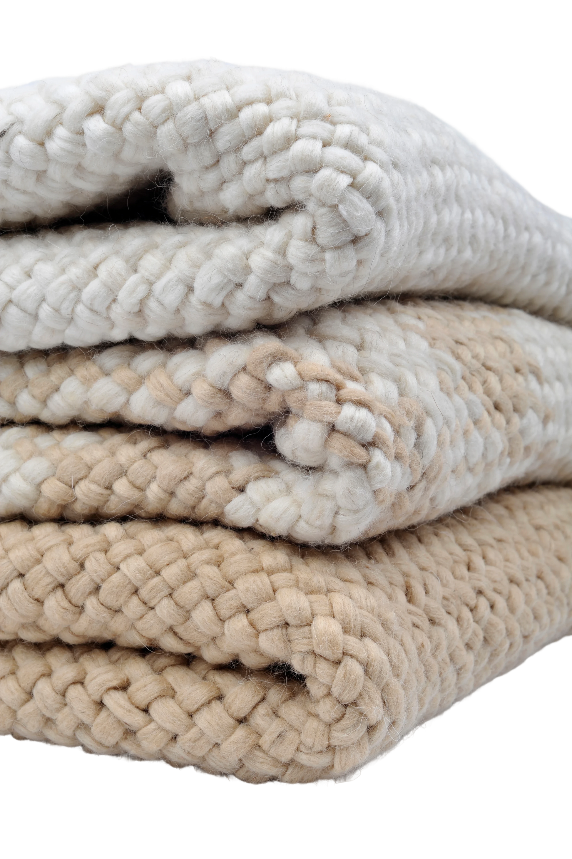 A soft, handwoven throw made from brushed sheep wool, designed to be both functional and stylish. Woven with double thread for added texture, it can be draped over your bed, used as a cosy throw, or wrapped over your shoulders for a touch of warmth and elegance. Finished with fringes for a refined, artisanal detail.