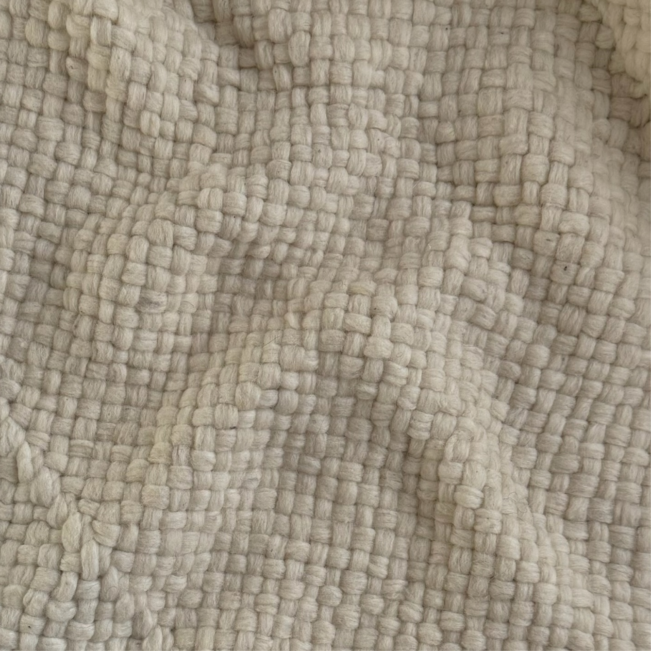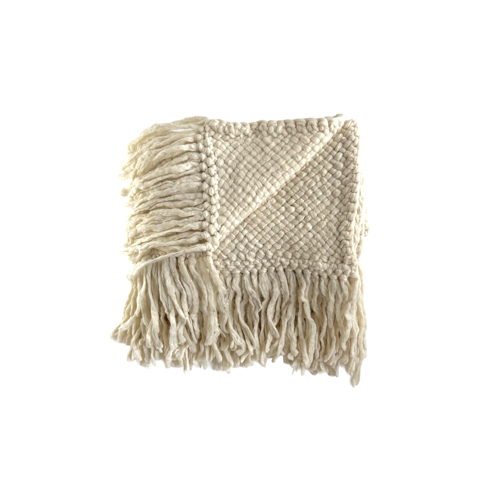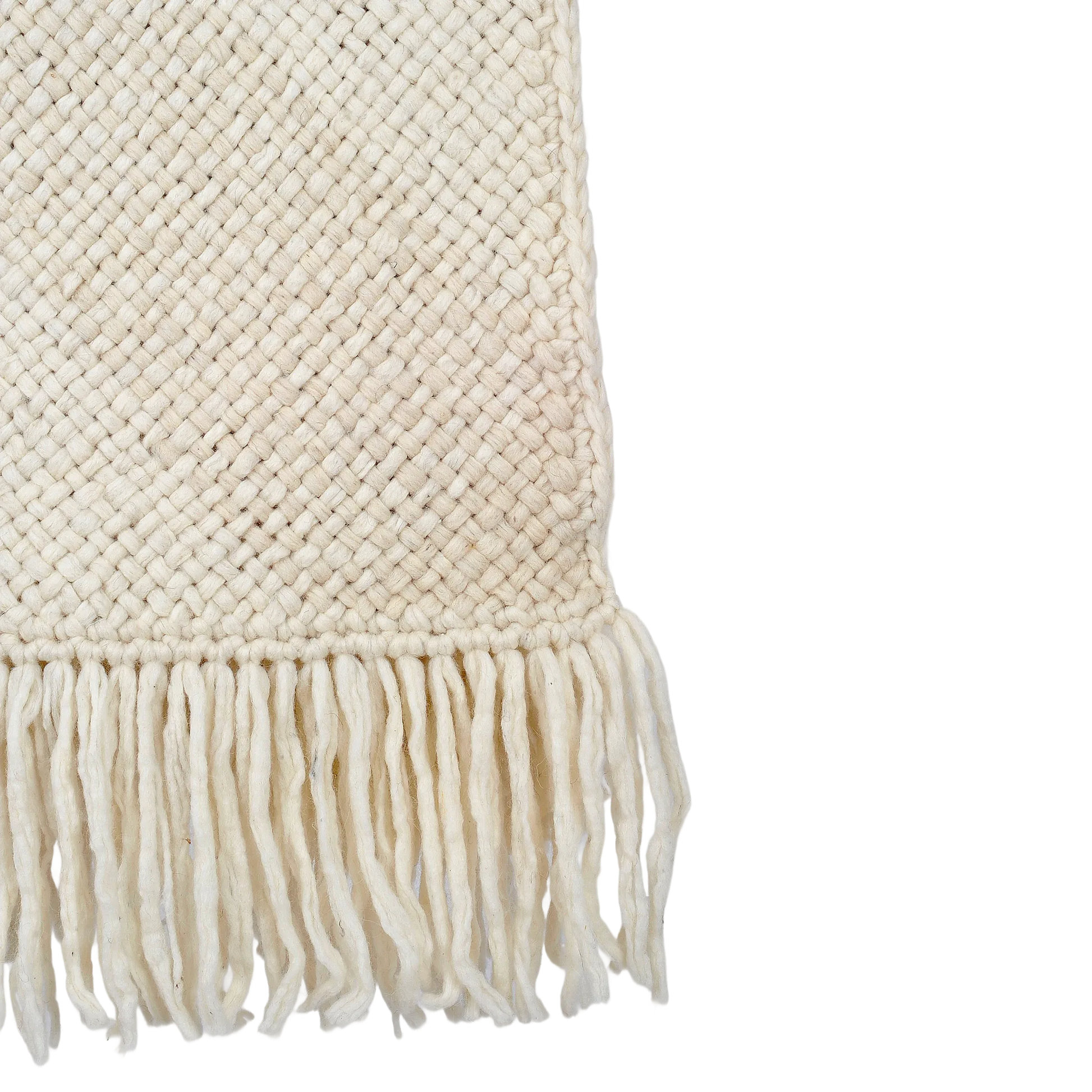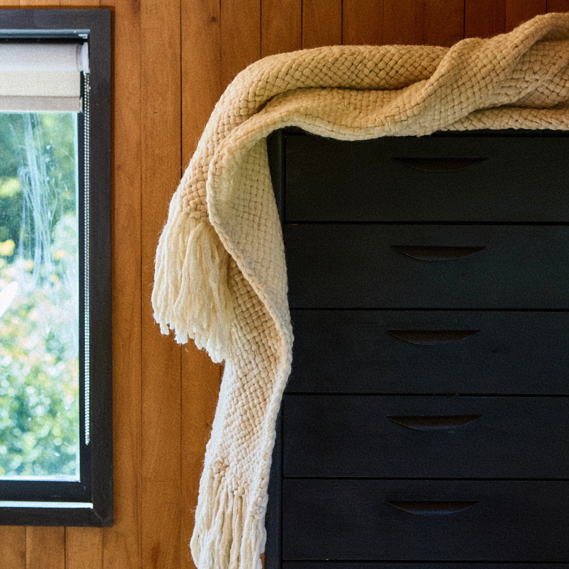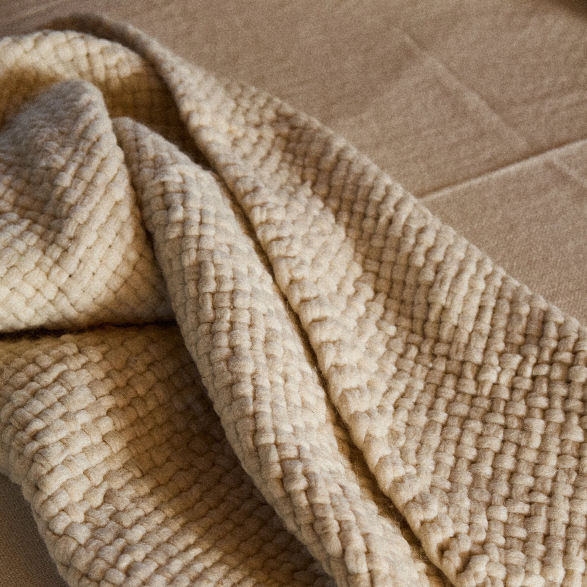 A cosy throw handwoven from brushed sheep wool using double thread for added texture. Finished with fringes, it brings warmth, softness, and a subtle artisanal touch to your space—or to you.